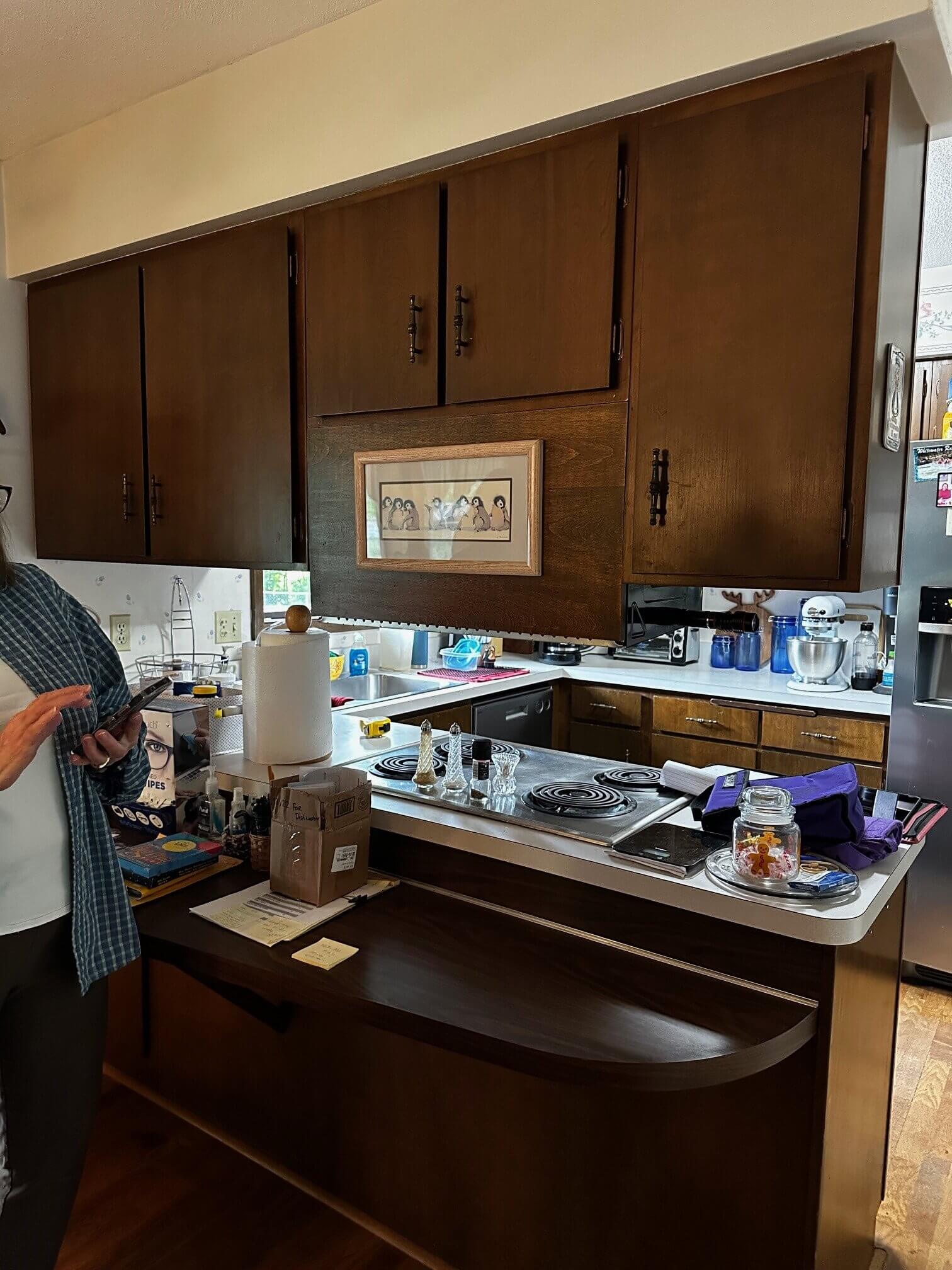 Gwen was looking to remodel the small and dated kitchen of her Bloomington, MN home. She turned to a family friend and contractor, Neil, to help get ideas and costs put together for the project. She had a budget in mind and didn’t want to necessarily deviate from it if she didn’t have to. Neil could get the construction costs, but when it came to cabinetry, that is where he turned to me for help. I have worked with Neil’s family over the years on different kitchen projects, so he brought me in to help with the planning and ideas for the space. I did a site visit to get measurements and photos, and like any project I walk into, I could immediately see the potential for the space of this 1960’s rambler.
