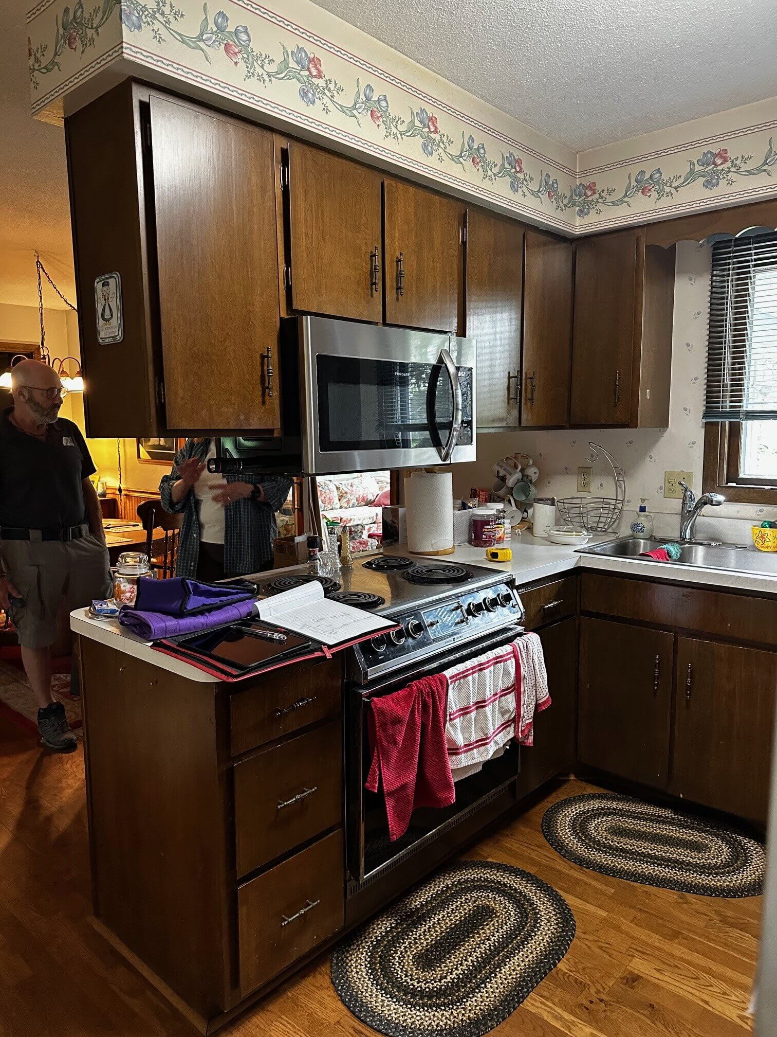 I was excited for this project and for Gwen! Not only because the kitchen had such good bones, but because I knew we could make some changes to really give the space that Wow effect. Gwen was going to update all the appliances, and Neil was willing to put in the work to move them around if necessary. Spoiler alert: it was necessary! There was a hall adjacent to the kitchen with a door that led to the back yard, but Gwen never used it, preferring to go outside via the four-season porch off the dining room. The initial thought was to remove the exterior door as well as the wall and make it part of the kitchen. There were also discussions of bringing the washer and dryer from the basement up to the bedroom off the back hall that served as her home office.