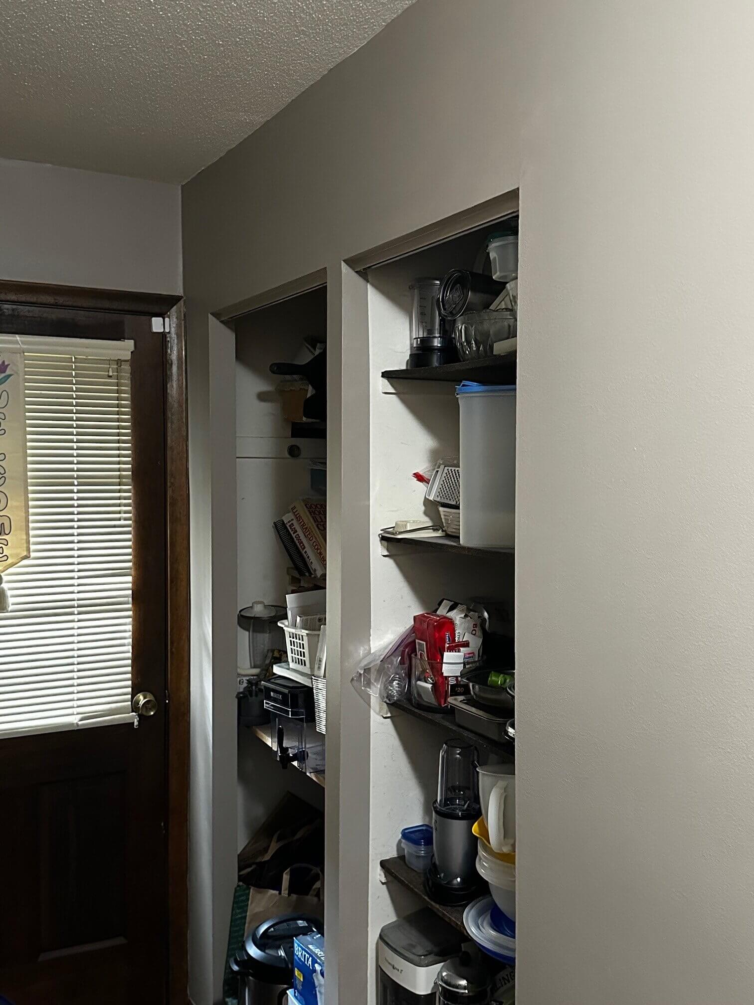 The doorway was moved to the left more to allow the fridge and range to run along the back wall where the closet used to be.