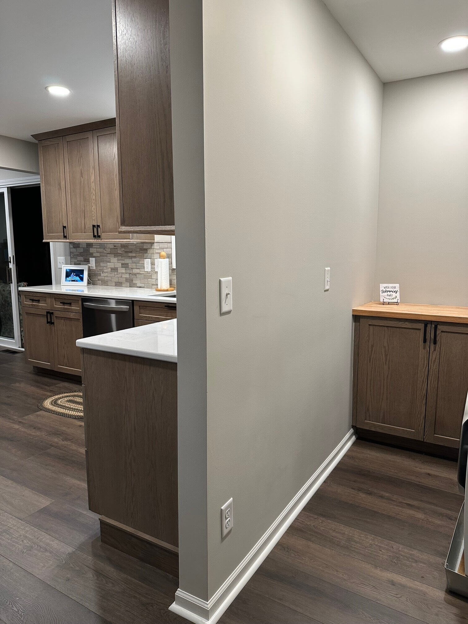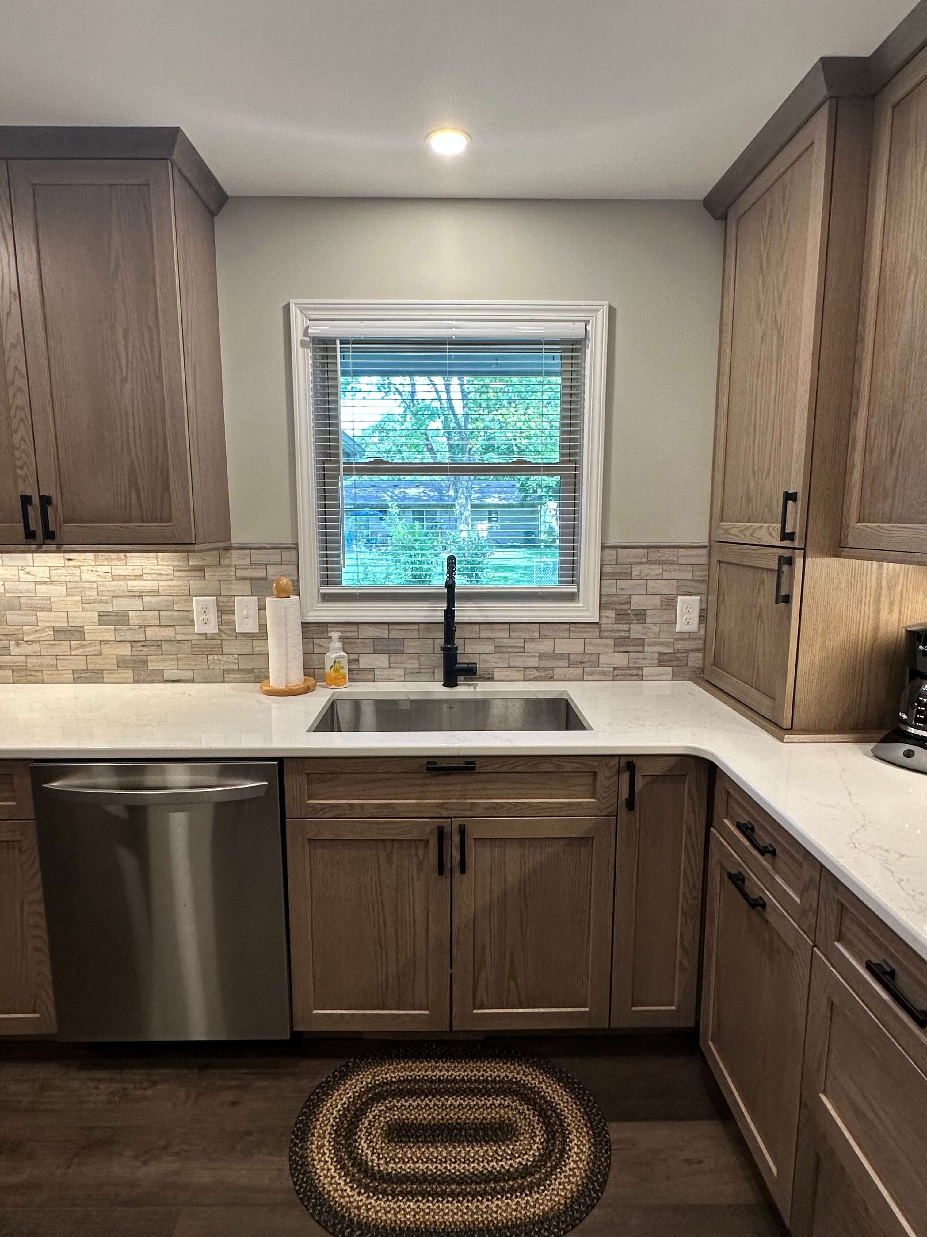 Gwen absolutely loves her new kitchen! “I have so much storage I can’t even fill up all the cabinets,” she remarked when I visited to take pictures. She still had a few boxes to put away, but between the new cabinets and laundry room, she is not lacking a place for anything. Her family and friends are thrilled with how everything turned out, not to mention how happy she is that she took the project on and went with it. “Everything is so open and bright, and I’m so happy for the help you and Neil provided! I absolutely love my new kitchen!”