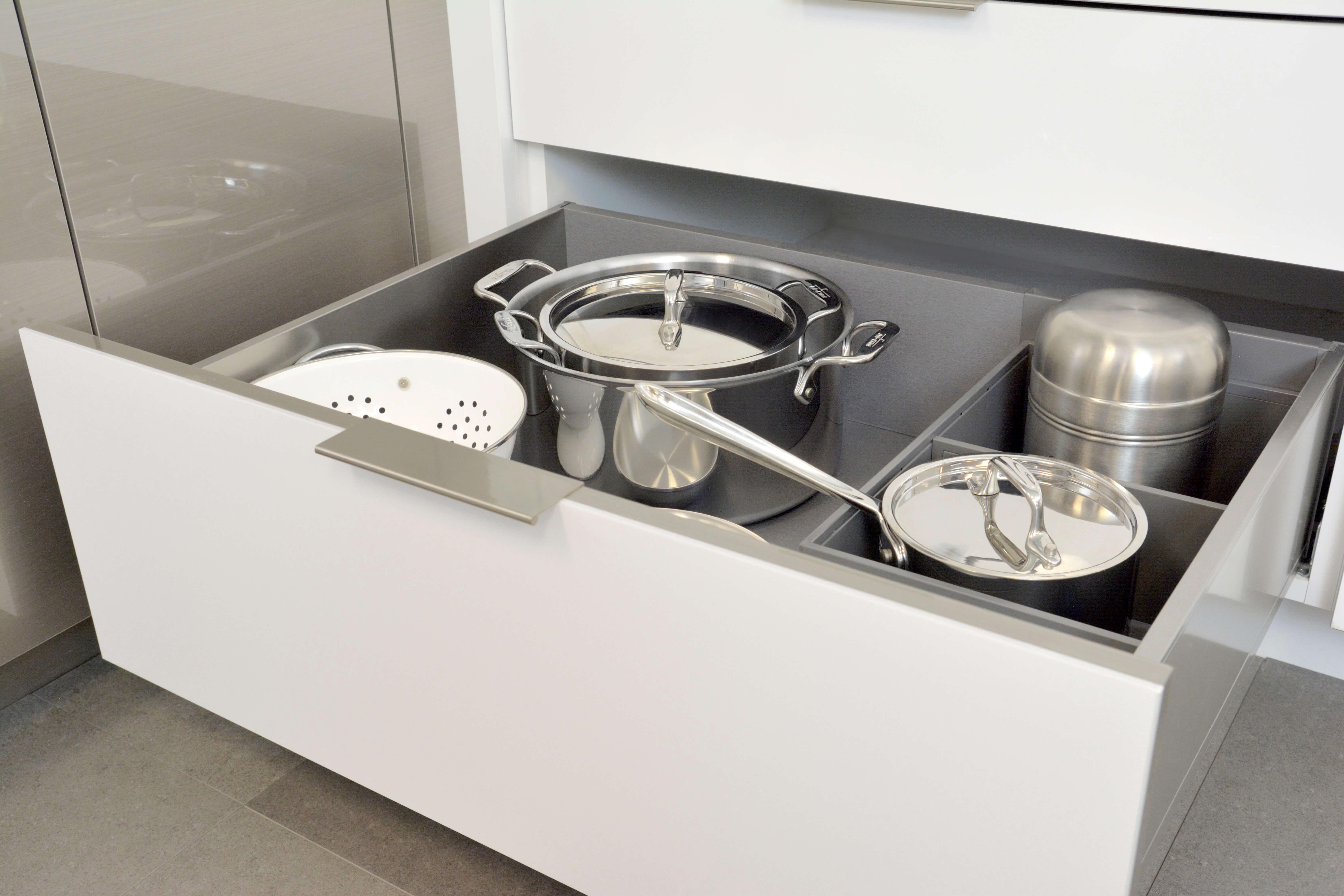 Stainless Steel Drawers work in combination with many of Dura Supreme’s wood drawer accessories.