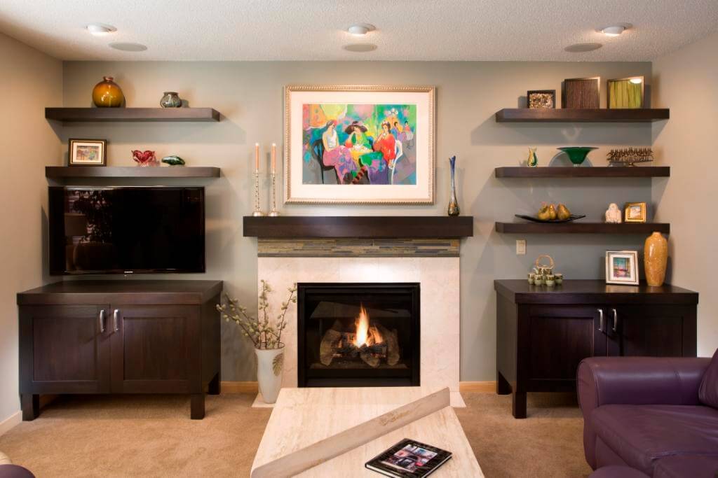 Since the kitchen is integrated with the family room, the design team made sure to tie the design elements together so that everything blended. The same Poppy Seed stain that was used as a contrasting color on the kitchen island was used in the family room for the cabinetry on both sides of the fireplace, along with the same Napa Panel door style. “The homeowner likes to use bright, fresh color in her home, and she was hesitant at first about this monochromatic color scheme, but it turned out so cozy and warm looking. She is very happy with her new kitchen!”