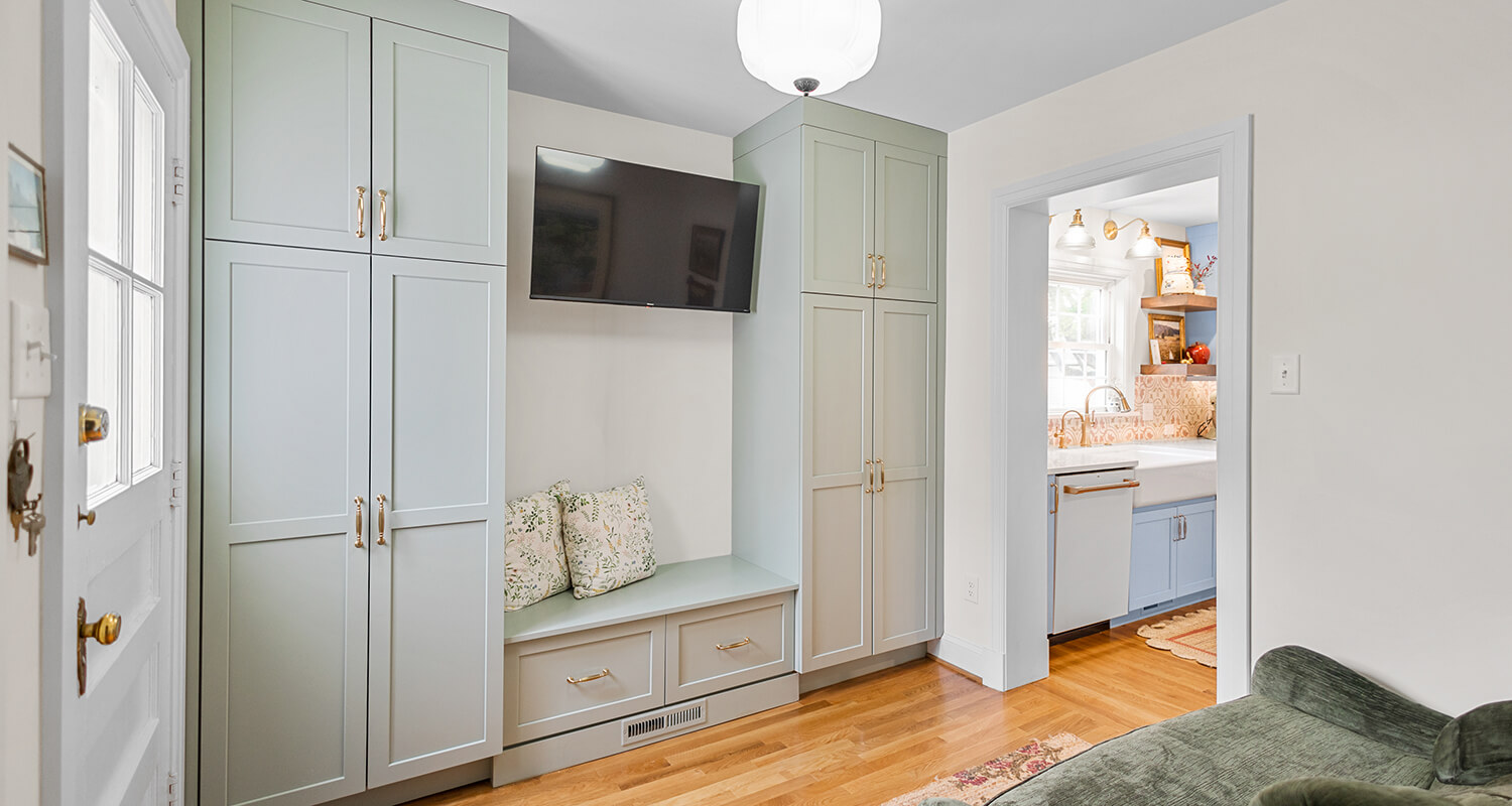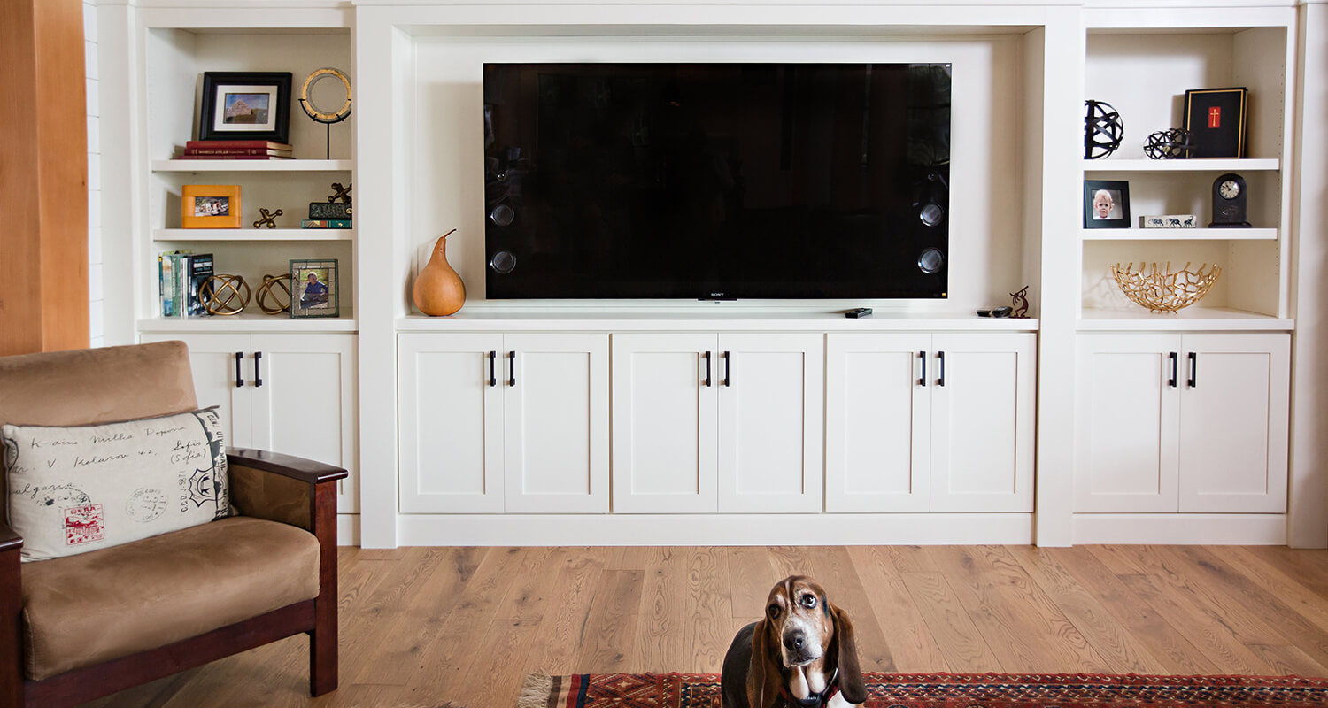 A built-in entertainment center (sometimes called a “media wall”) is one of the most useful cabinet built-ins you can add to your home. They add character and beauty to a primary living space while helping to reduce clutter.