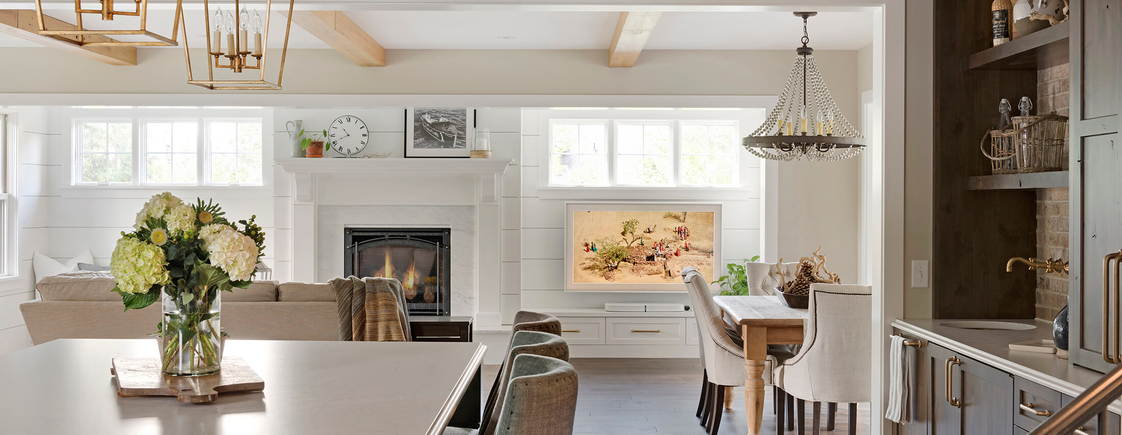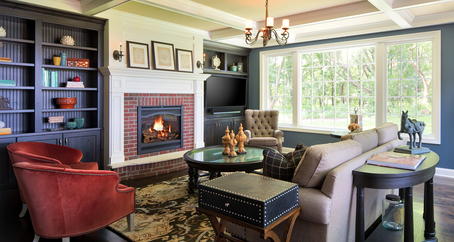 Living room design by Witt Construction, Inc., Saratoga Springs, New York. featuring Dura Supreme Cabinetry. Photography by Morgan Stanhope.