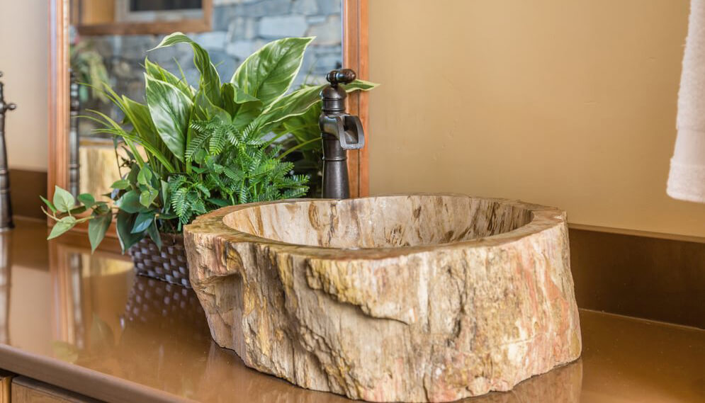 Beyond using houseplants and earthy color palettes to bring a burst of real-life organic elements into the design, this style is known for taking the outdoors indoors a step further. Finding creative and surprising ways to incorporate raw materials found in nature is a well-known practice. Designers might use antlers to create a light fixture and use pine cones, twigs, logs, driftwood, etc. for decor and handmade art. A large rock or log could be used to craft a unique piece of furniture. Practically any item that connects us to the great outdoors could be considered a possible design feature.
