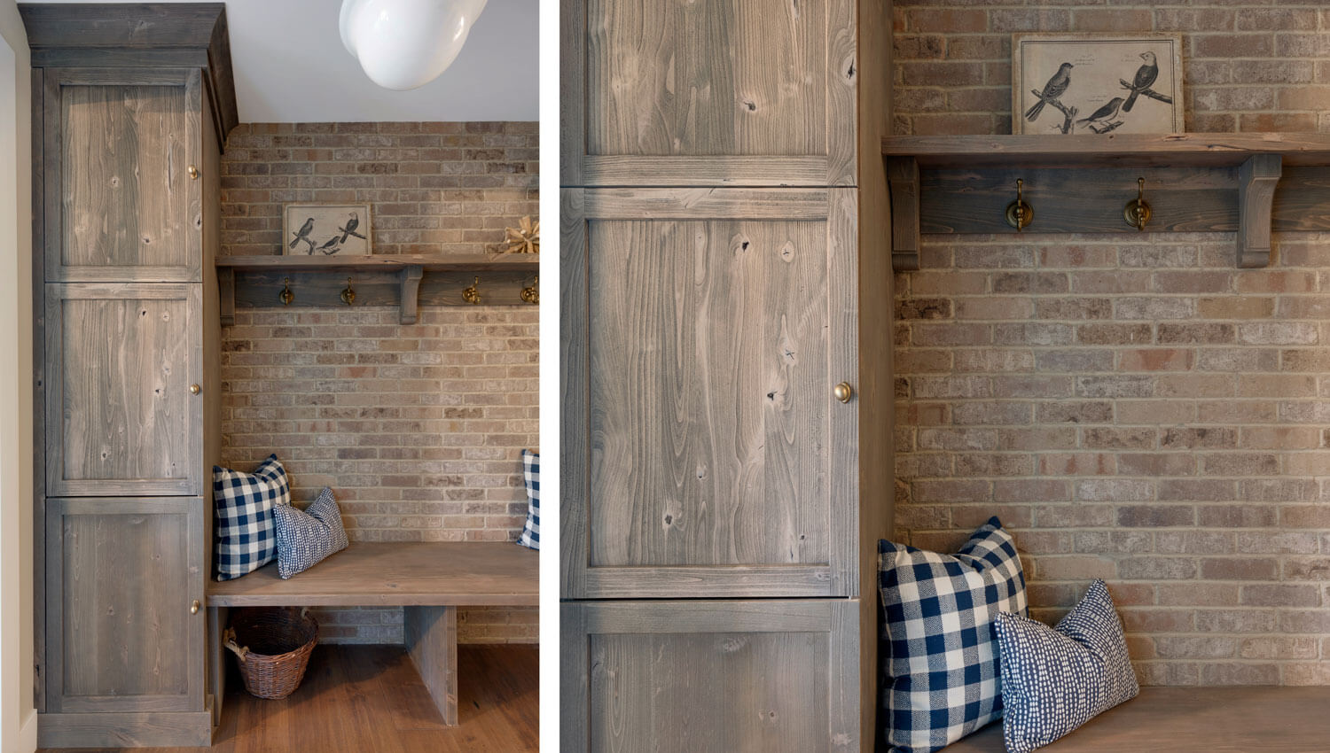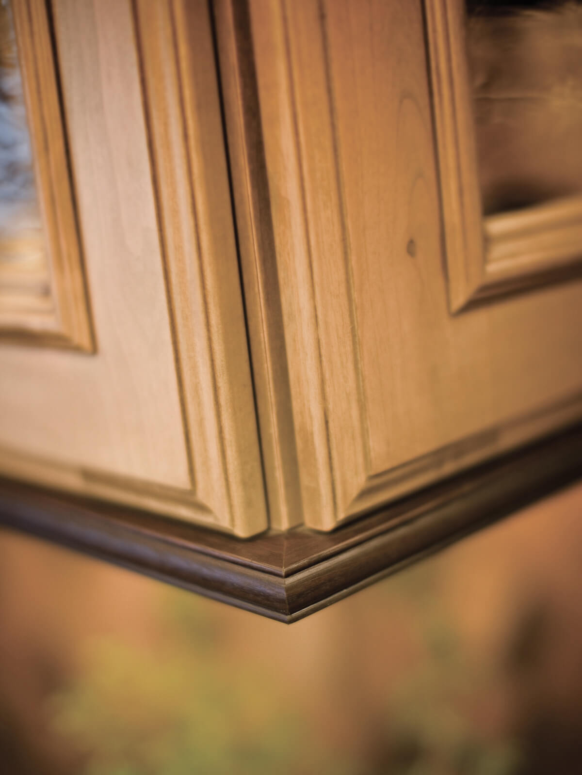 If you’re looking for a classic Rustic Traditional style, consider raised panel or flat panel styles with medium to wide rails and simple to intricate detailing. A character-rich wood or distressed painted finish will help top off the look. For a farmhouse or old frontier-like twist, select a door style that includes shiplap or bead board features. Door construction styles can vary from Full Overlay to Standard Overlay and even Inset.