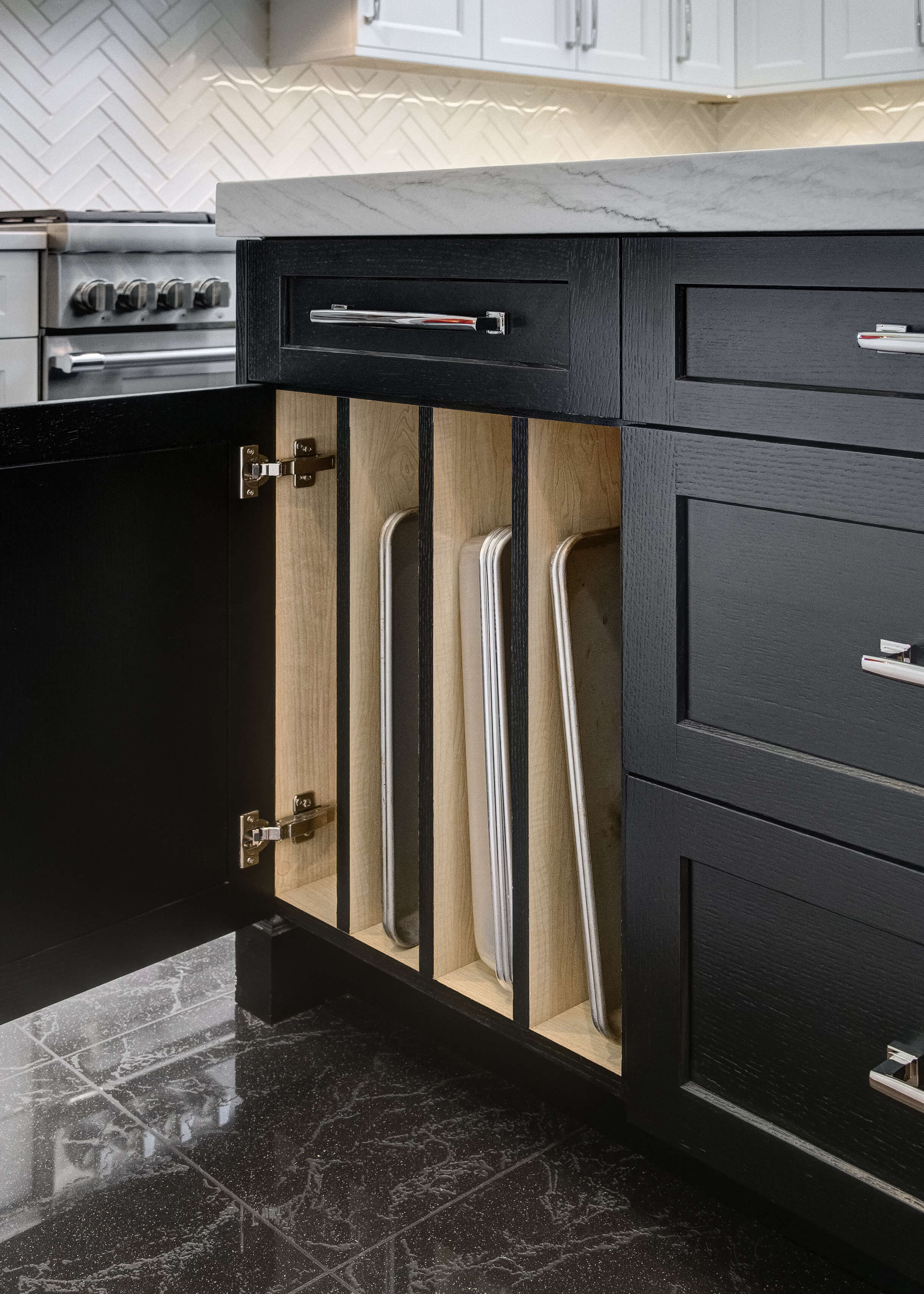 Drawer Storage for Pans, Trays, and Cutting Boards