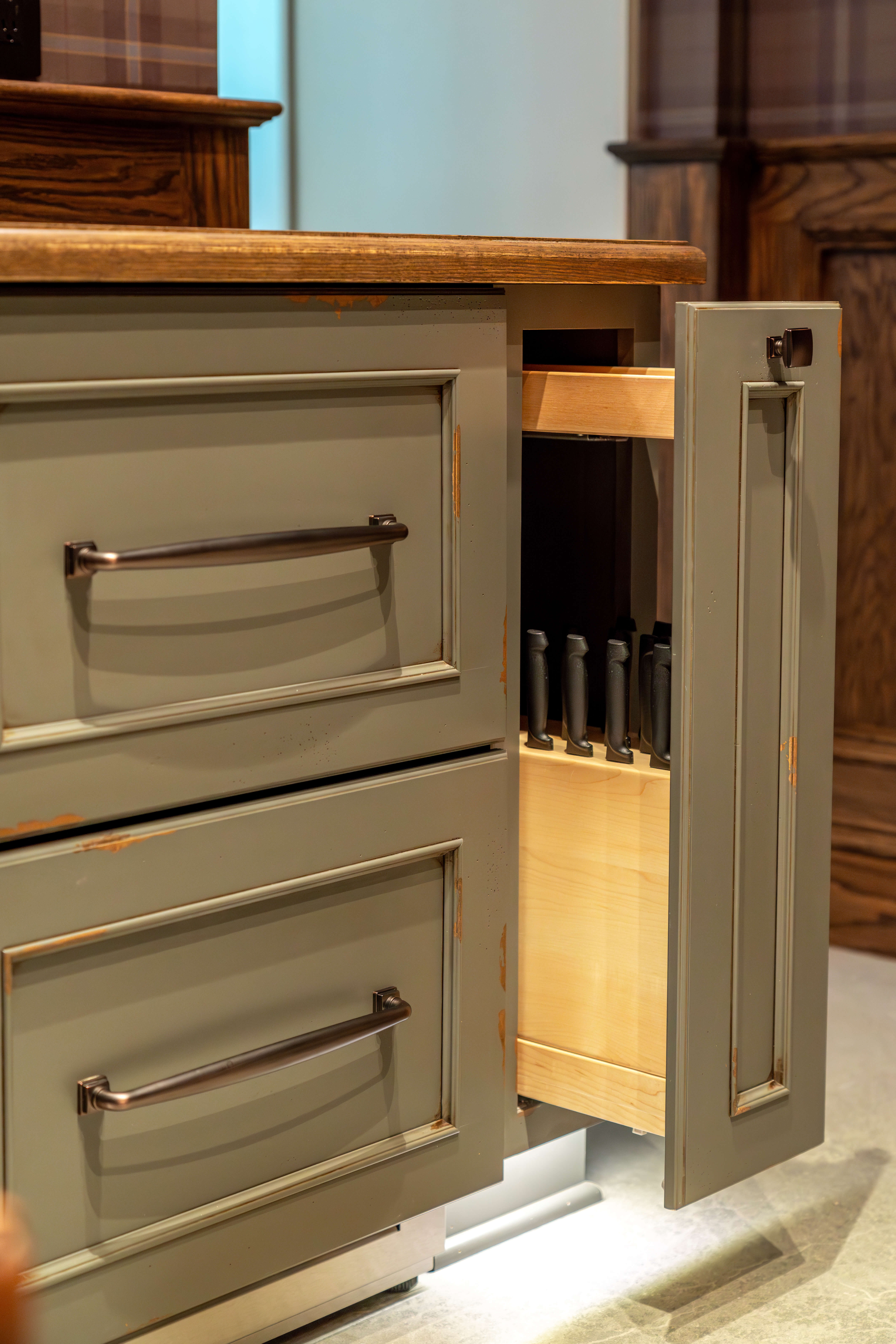 A Pull-Out Knife Block makes it handy to slice lemons and limes and keeps the countertops clear.