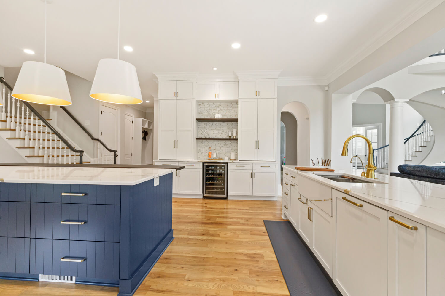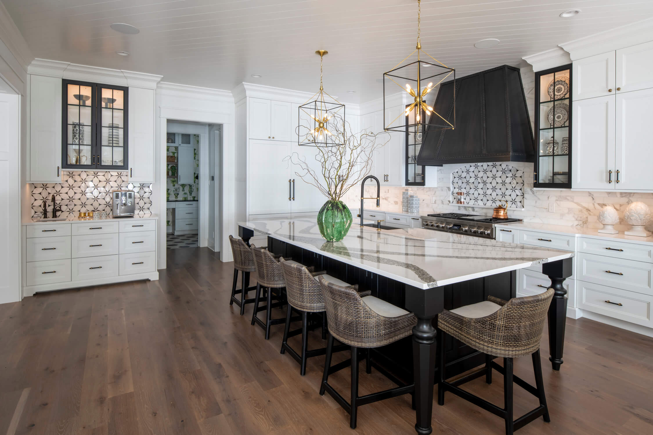 You can’t go wrong with traditional designs when they are done as well as this kitchen project.  Not only does it feature two different cabinet finishes, but it uses two different door styles that are from the same family; Hawthorne & Highland. Both have the same inside and outside profile, however, Highland is a recessed panel and Hawthorn is its raised panel sibling. Both are perfect for mixing in the same room or a whole house.