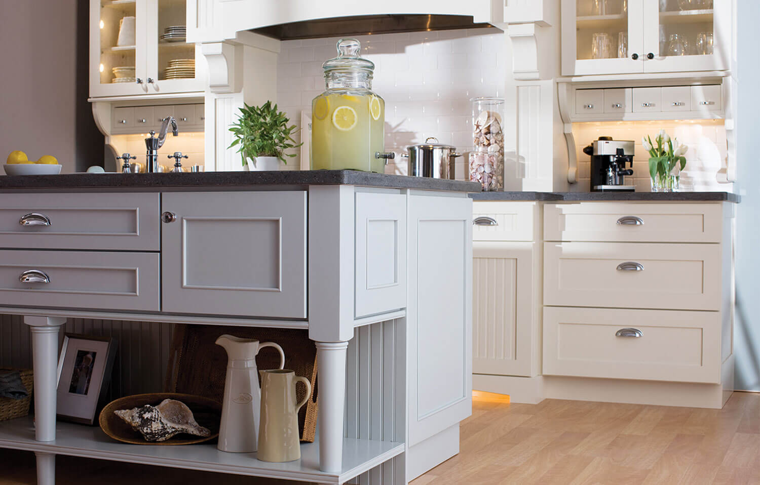 While many kitchens are designed with two different finishes, there are opportunities to introduce two (or three!) different door styles as well to mix it up. This is especially true when you are designing cabinets for a whole house. Not every room has to have the same door style, but you can certainly keep the same elements that pull them together. Paying attention to door families based on the sizes of the stiles and rails, as well as the profiles of the door will help you determine what will mix well together. Or, go hog wild and come up with your own combination of doors for the perfect design! The choices are endless! Talk to your local Dura Supreme designer to determine what door family is the perfect match for you.