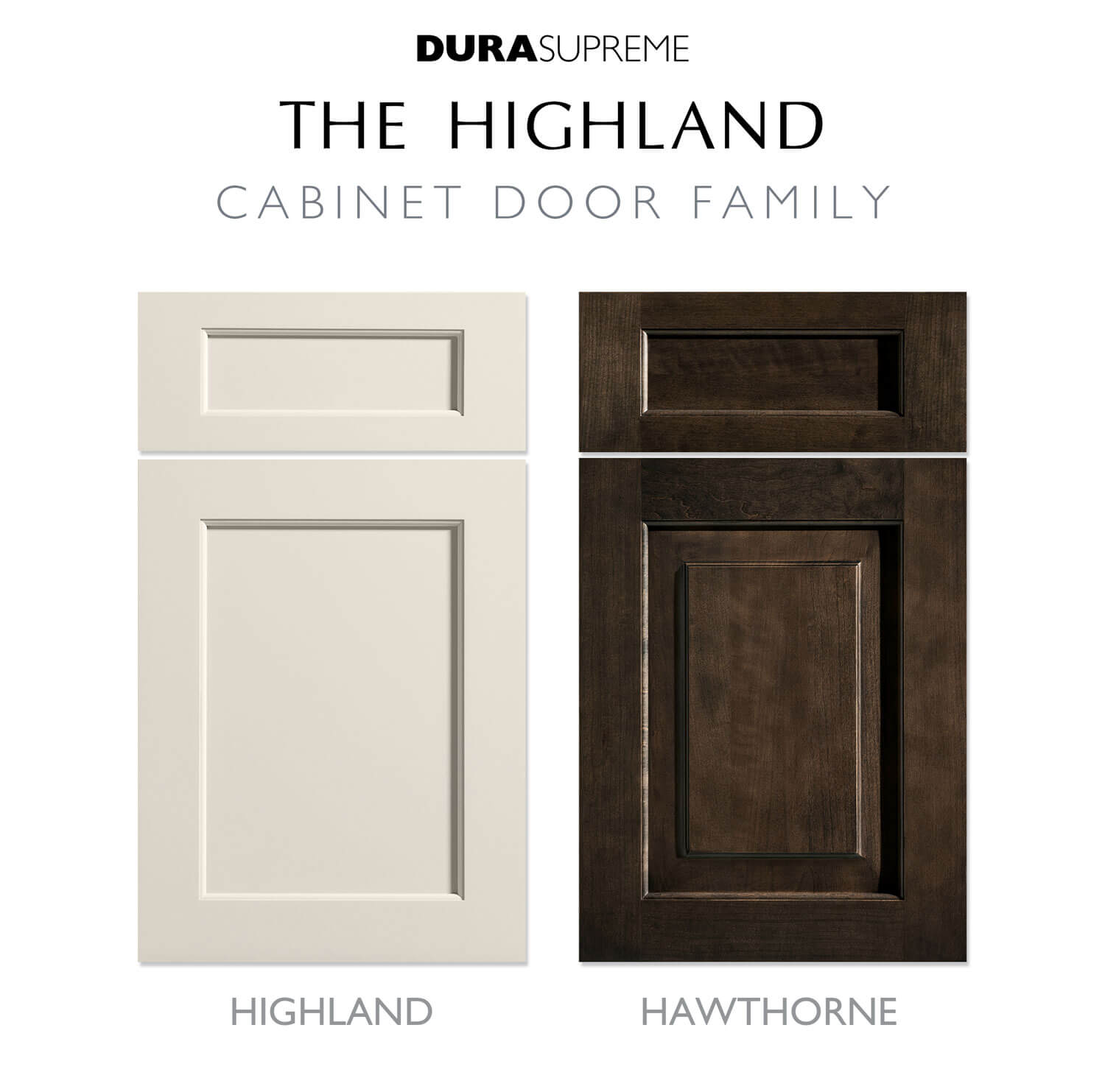 Dura Supreme offers so many different door styles to choose from that it can be a bit overwhelming to try and find different cabinet doors that mix well together. That’s where Door Families come into play to help simplify the choices. Door Families have a couple of elements in common; the same size stile and rail as well as the same inside and outside profiles. Many of our doors also offer the option of having a flat or raised center panel to choose from. Below are a few examples of some of our door families.