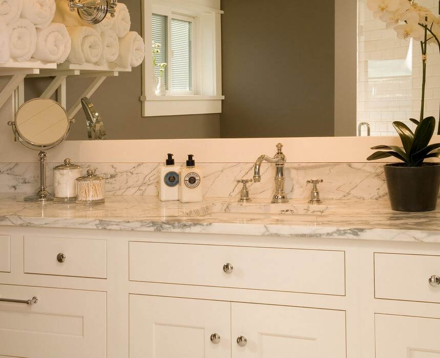In keeping with the new interior design of the home, Greany selected the bathroom cabinetry and design elements to coordinate with the rest of the home.