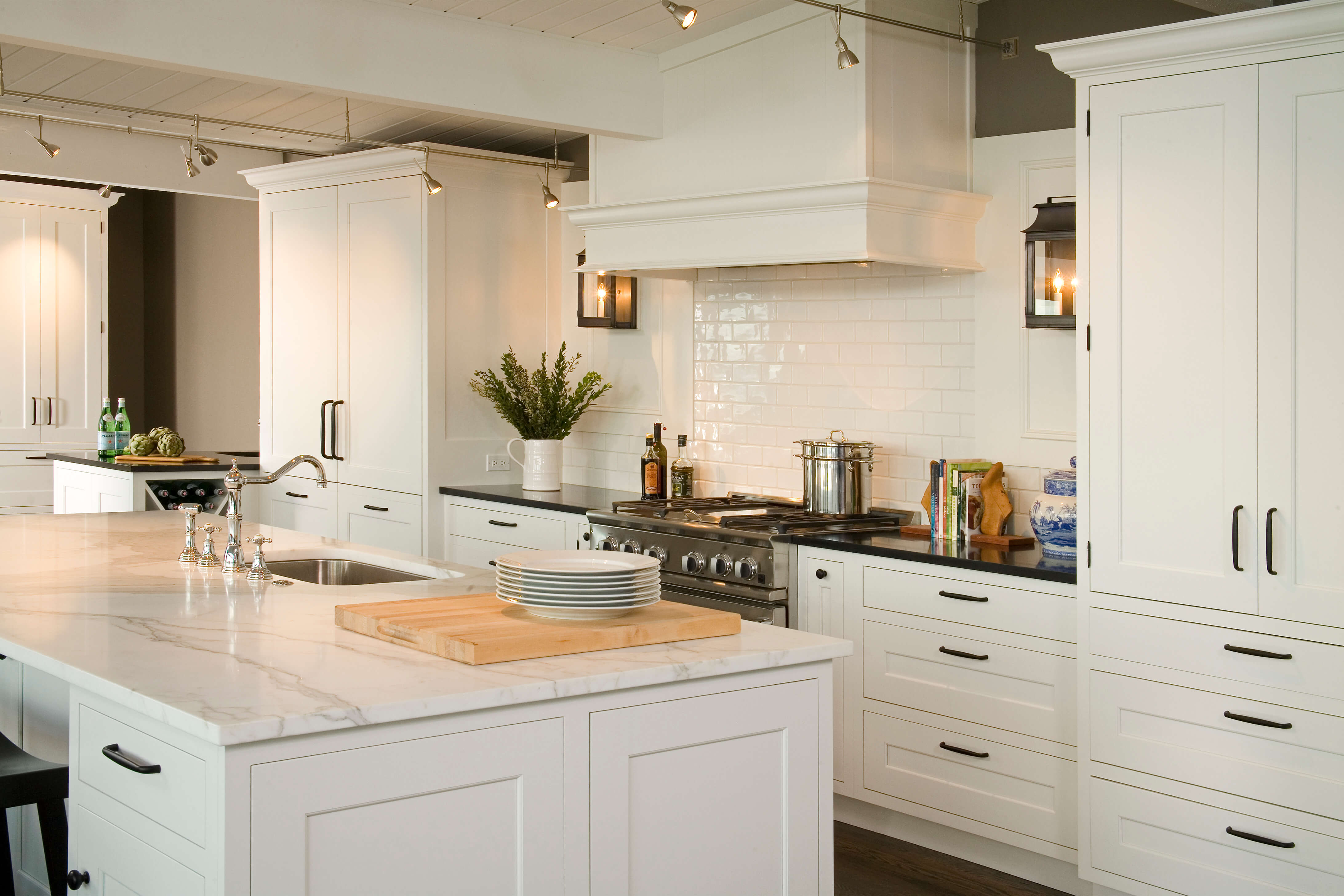 “I worked closely with the homeowners to incorporate numerous ideas she had collected. She wanted a clean design but favored a more traditional look over a modern or contemporary design. The ceiling already had a planked motif that works so well with the coastal design and so we took this visual cue and repeated it in the hood and the fireplace mantel”, explained Greany.