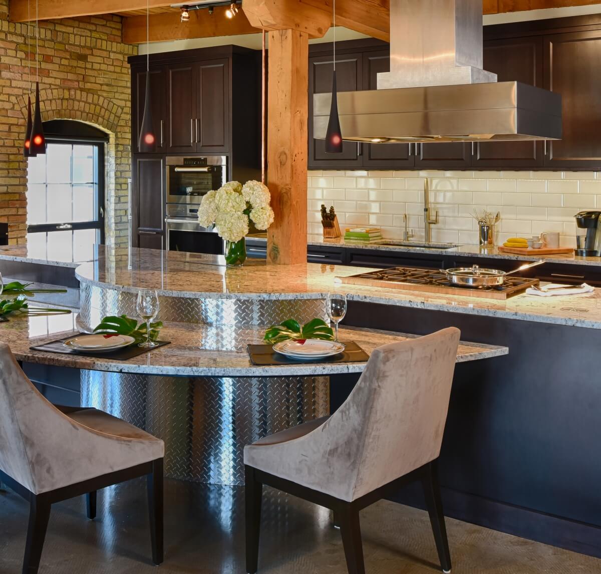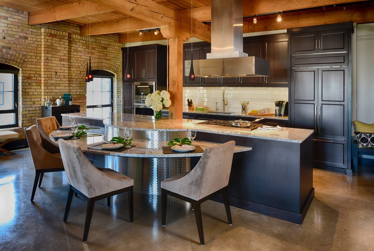 With the desire to relocate to a convenient and central downtown location, Dave and Marie were looking for a major lifestyle change. They dreamt of being closer to their careers, their friends & family, and the perks of downtown living, but most of all, having more quality time with one another. “Dave & Marie are fans of Industrial Chic design. They fell in love with the wood beams, brick walls, arched windows, and concrete floors of a newly renovated, historic warehouse and wanted the kitchen to work and perform beautifully!” explained designer Leslie Meyers of Revival House in Plymouth, MN.