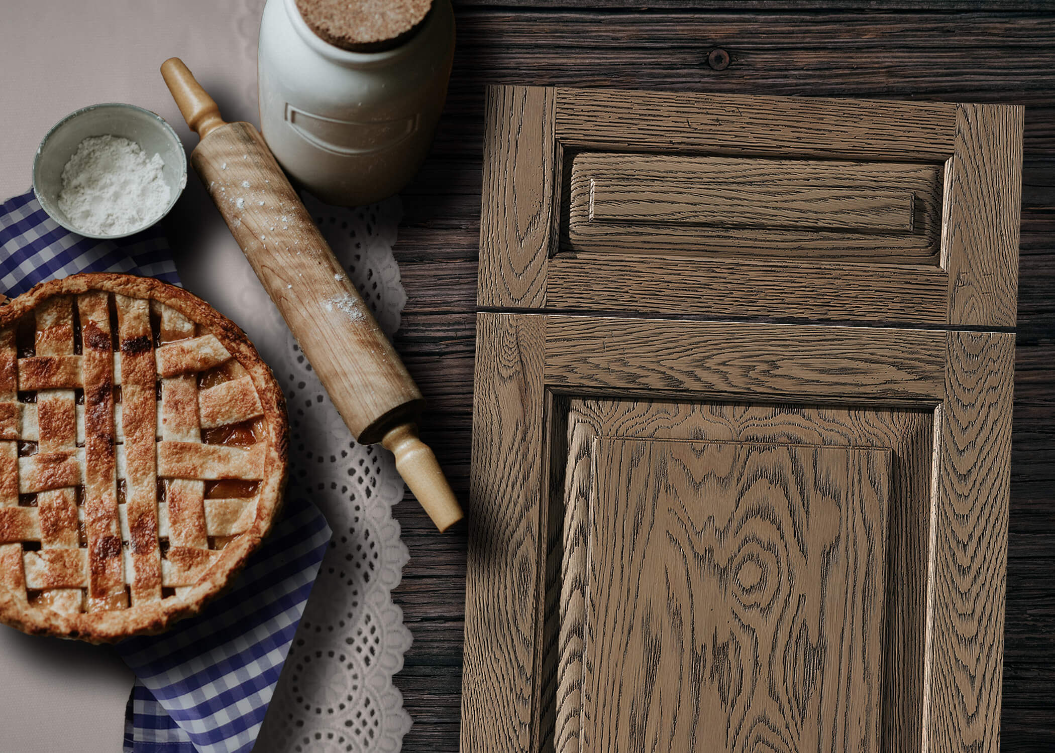 Quarter-sawn Oak was essential to the design style of the Arts & Crafts movement, which birthed Craftsman style in architecture, furniture, and other decorative arts in America. The popular architectural style of Bungalow and Prairie homes used a simple, five-piece door (often inset) for kitchen cabinetry, as well as built-ins throughout the home. Our Craftsman door is a timeless design that can be used in many transitional designs, and a warm stain is reminiscent of a bygone era.