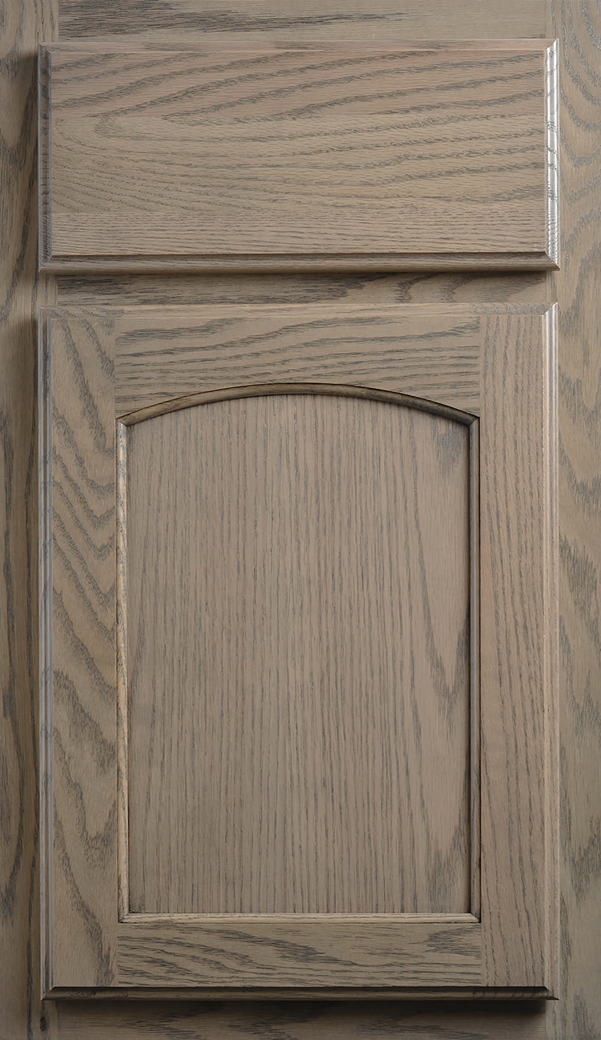 Stained cabinets have been reinvented in recent years with finishes that are true brown in color, rather than red. Gray stains and those with gray undertones have also begun to appear on the design scene. Our Manchester Panel door in Cashew-stained Red Oak shows off this trend beautifully. The brown tones are muted, and the gray undertones are accentuated by the open graining that is characteristic of Oak. Rather than shying away from this wood species, designers are incorporating it into kitchen designs as an accent or statement piece in bathrooms.