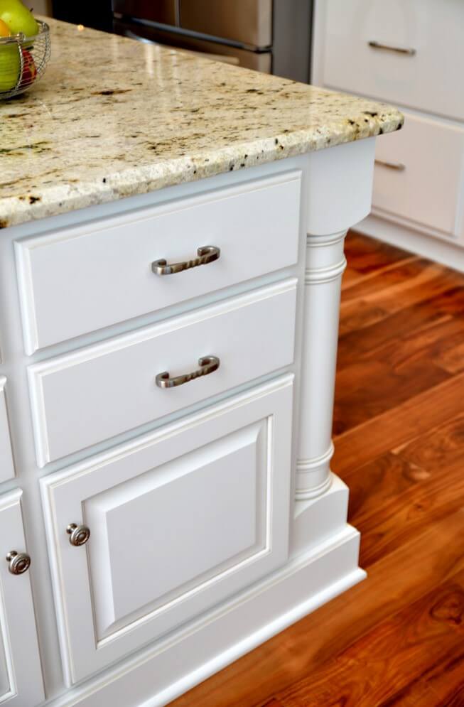I will start with a picture of a Standard Overlay design. Look closely at how much of the cabinet’s front (face frame) is visible surrounding the door and drawer (space between drawers and door).