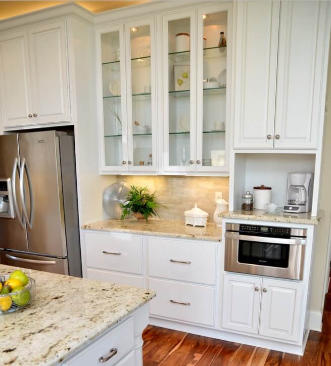This kitchen features Dura Supreme Cabinetry’s Arcadia Classic door style in Full Overlay.