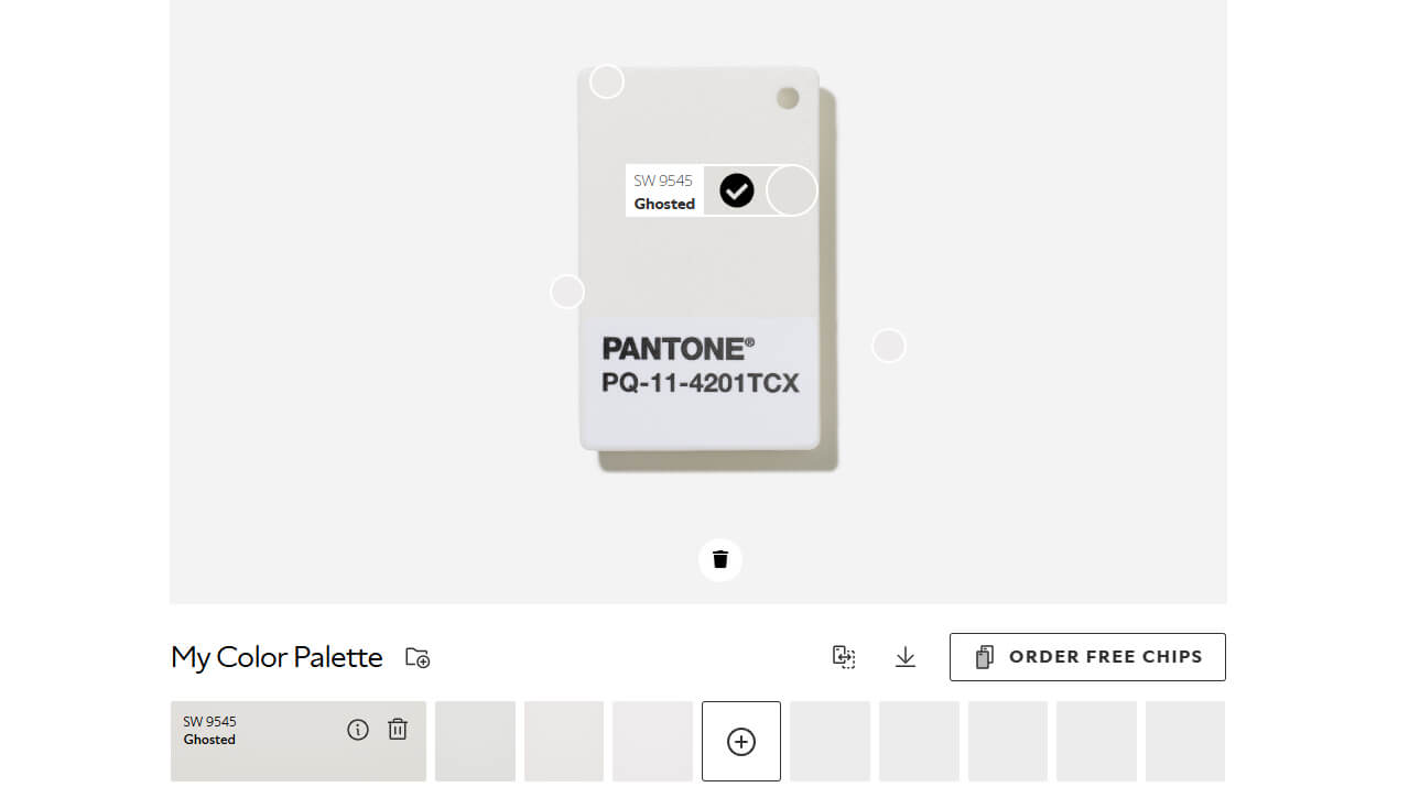 The tool will then identify Sherwin-Williams colors that best match the image. As you can see in the image above, it suggests Sherwin-Williams’ colors Ghosted SW 9545 and Ice Cube SW 6252 as the closest matches to Pantone Cloud Dancer 11-4201.
