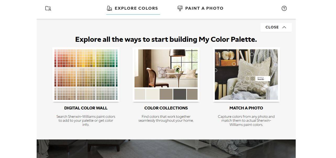 Once opening their Color Visualizer on their website, choose “Explore Colors” and “Match a Photo” and upload a photo of the pantone color or other color you’d like to find a similar Sherwin-Willimas color for.