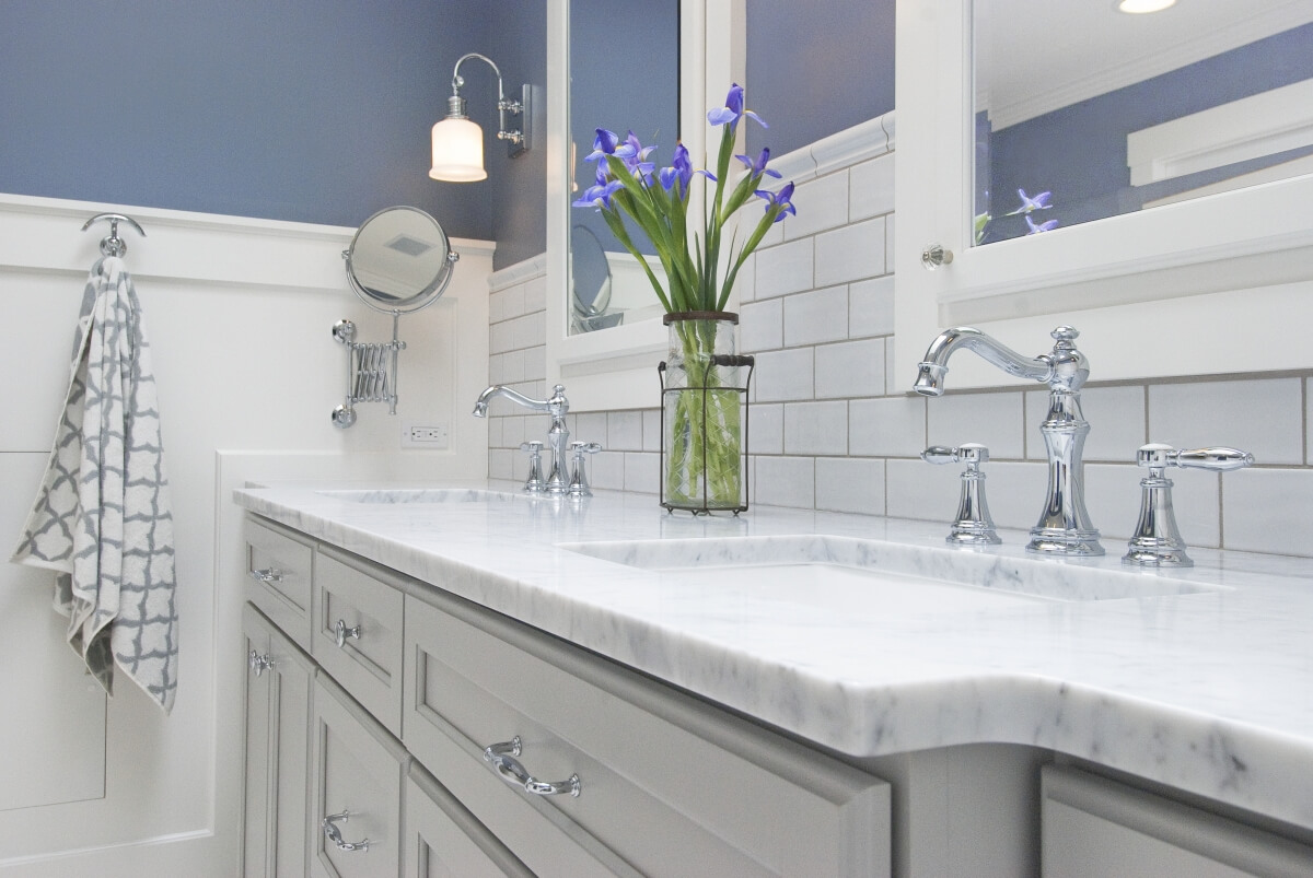 Vessel sinks used to be the must-have item in a bathroom, but thanks to the popularity of the transitional style the undermount sinks have reemerged to become a popular choice among designers. Undermount sinks are a great option because they mimic clean lines and quietly sit in the background allowing other design elements to stand out as the focal point.