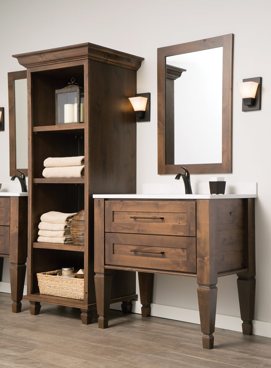 Evidence has proven that more and more homeowners and designers are selecting wooden furniture-style vanities that look like free-standing furniture pieces. The richness and textures of the wood bring charm and warmth into a crisp, clean bathroom that welcomes a user in.