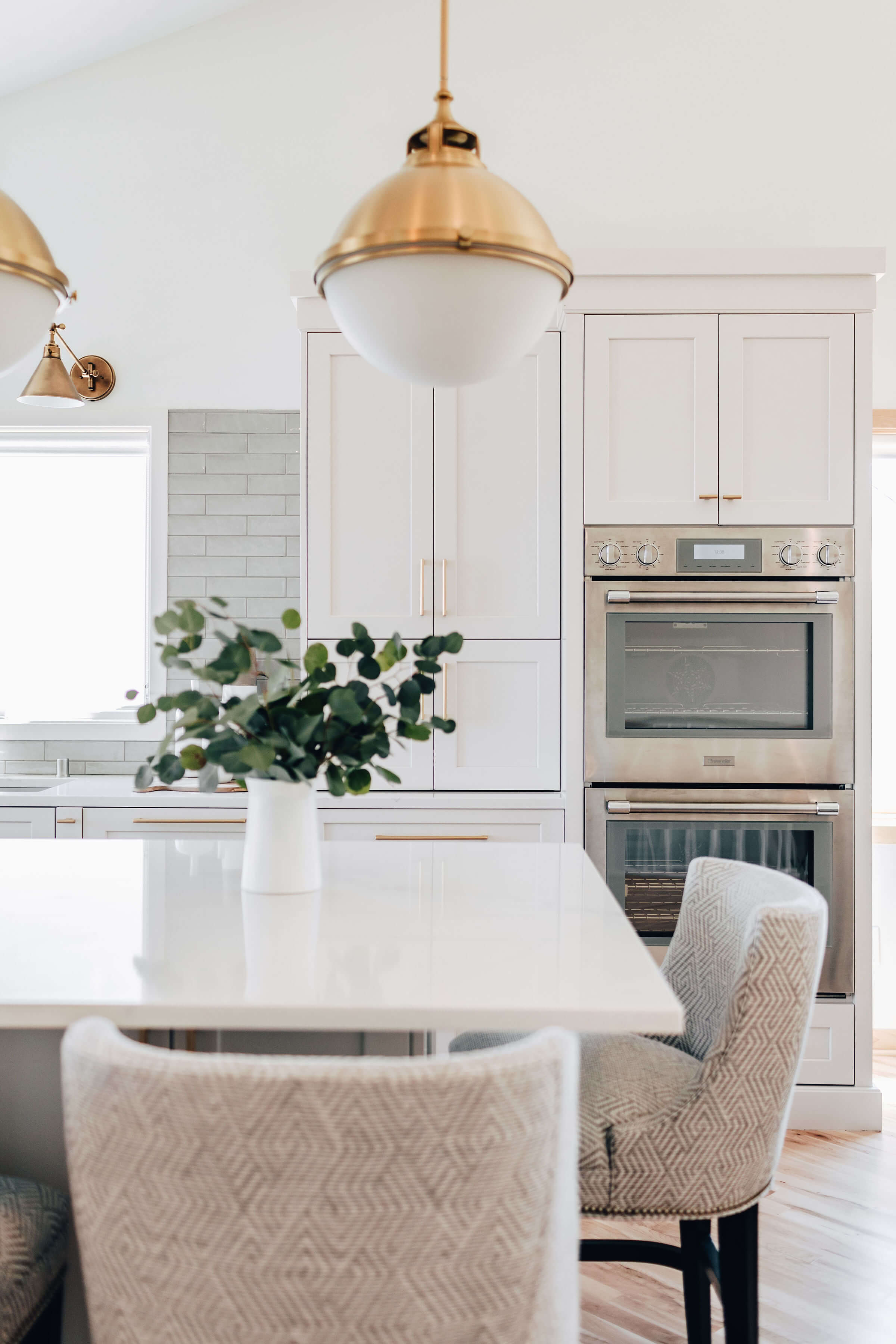 The client had always wanted double wall ovens. Not only did Danielle, find a prime location for the wall ovens, she also included a cabinet dedicated to storing trays and baking sheets above the wall ovens to make baking easier for her client.