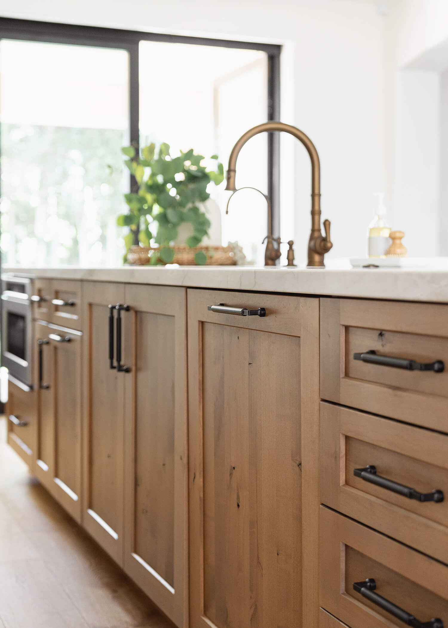 The kitchen island features Dura Supreme’s popular “Sesame” stain on Knotty Alder.