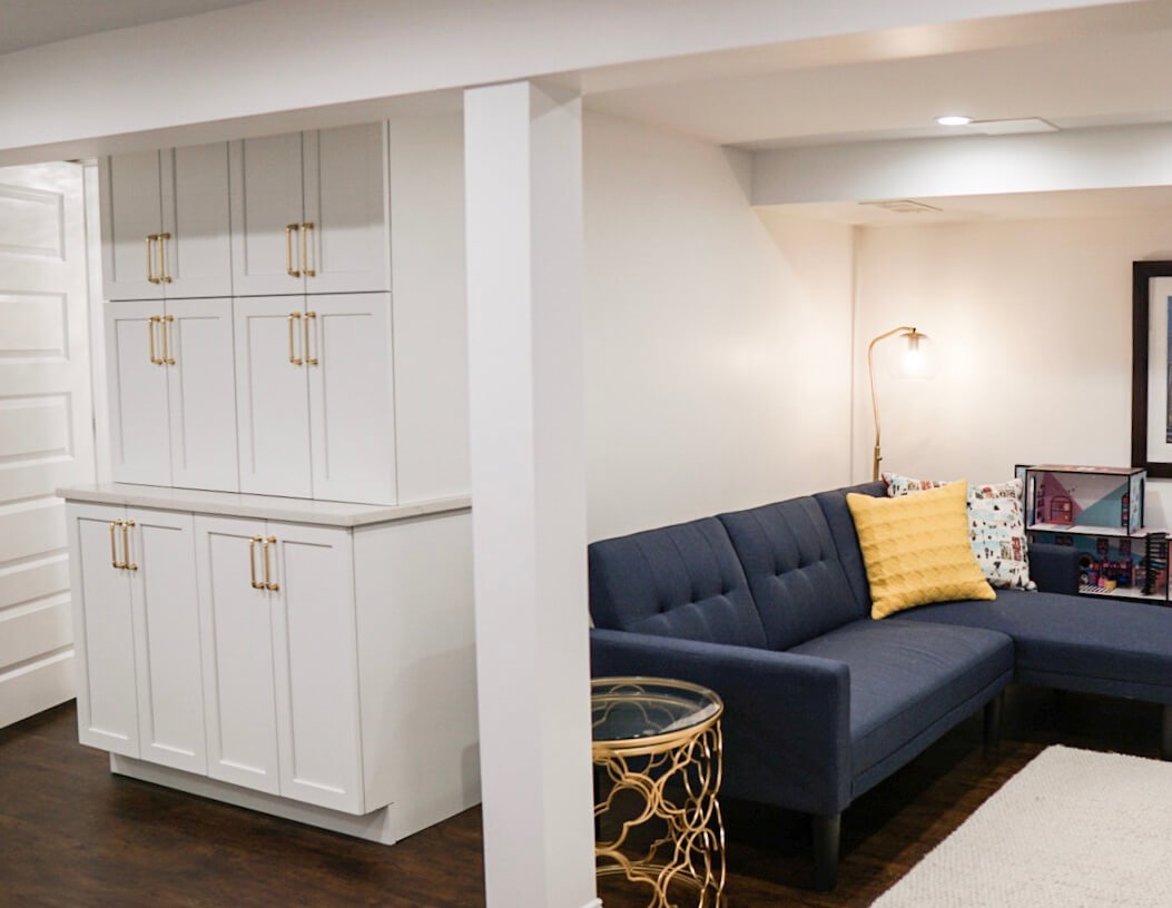 The basement had a large area that was not fully utilized by the family. Over the years it pretty much turned into a storage unit. This was the perfect place to add a dedicated hangout area for their two kids, as well as streamlined storage to fit the homeowner’s needs.