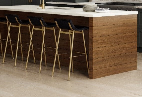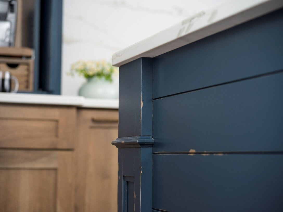 Dura Supreme’s Shiplap Island Endcap with Column in a custom Heritage finish using the Curated Color “Gale Force”