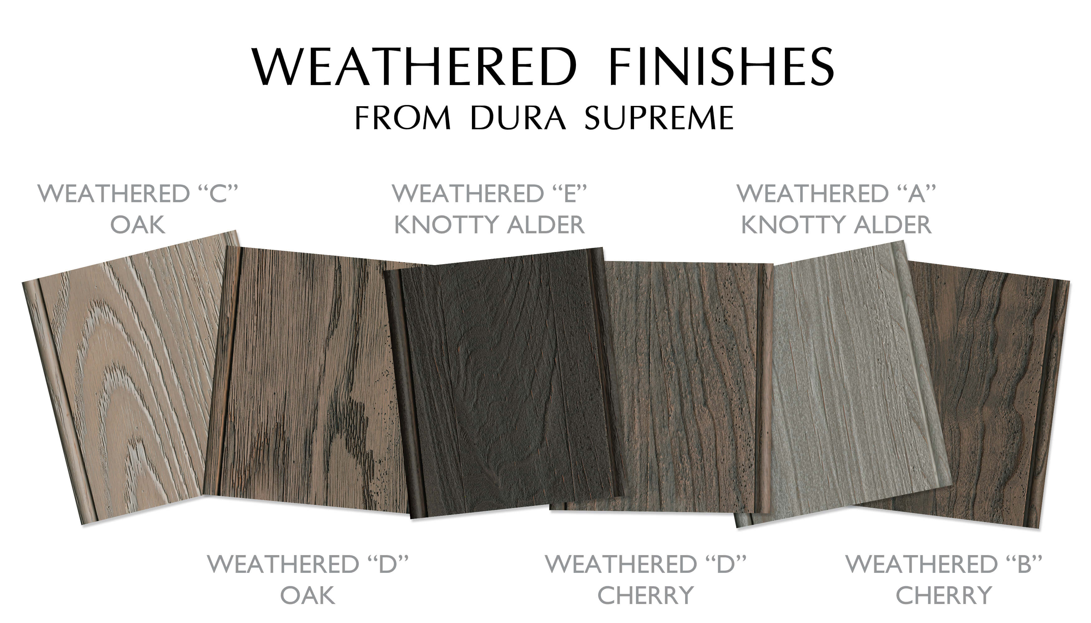 Dura Supreme’s “Weathered” collection of finishes creates a unique, weathered finish on wood. Our special finishing process can be applied to almost all of our door styles, or used with our shiplap strips and panels to create a one of a kind space.