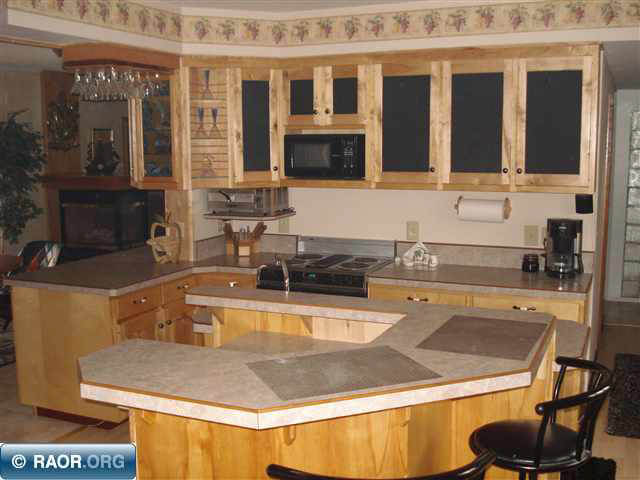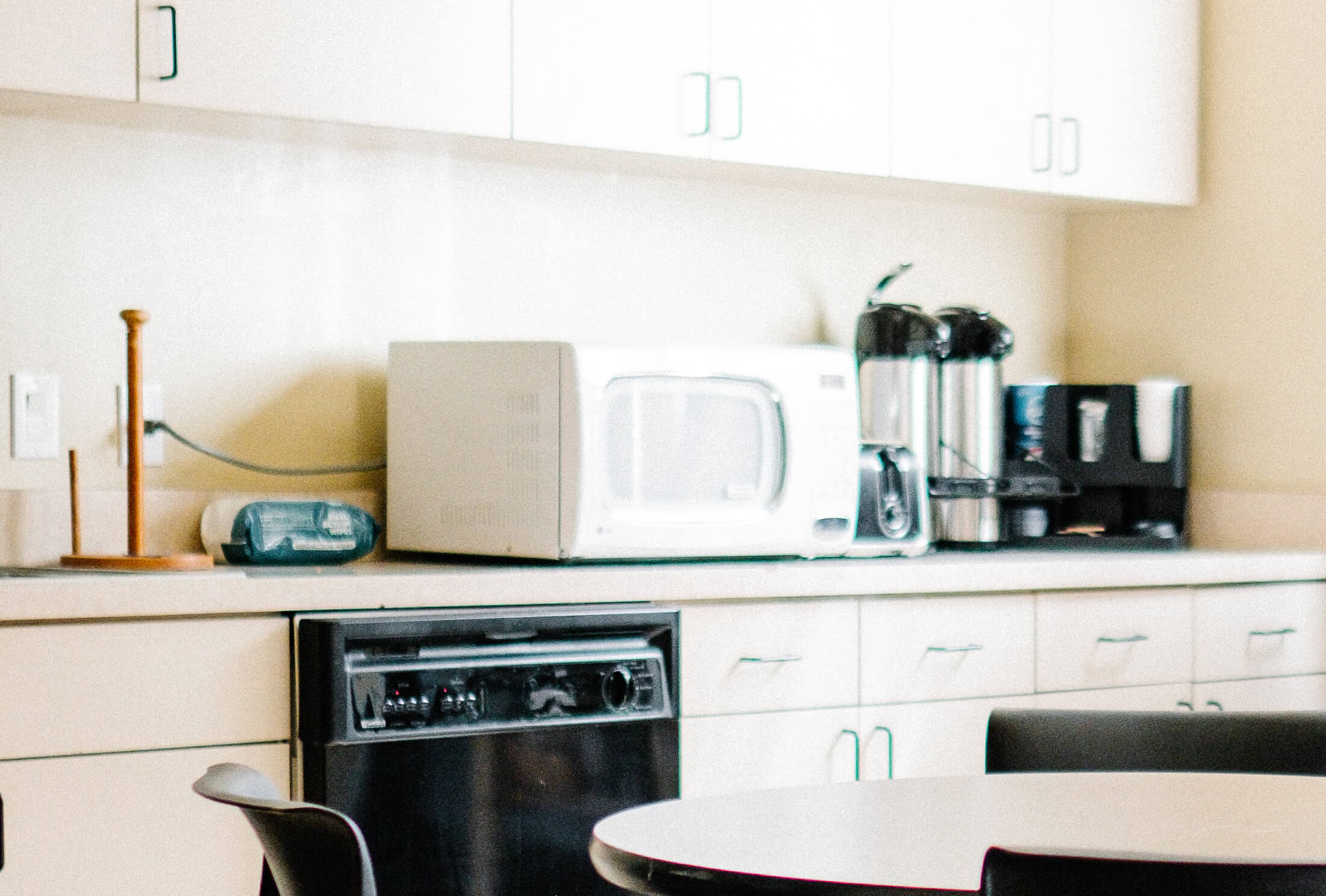 This is a nice kitchen, but the countertop is taken over by small appliances.