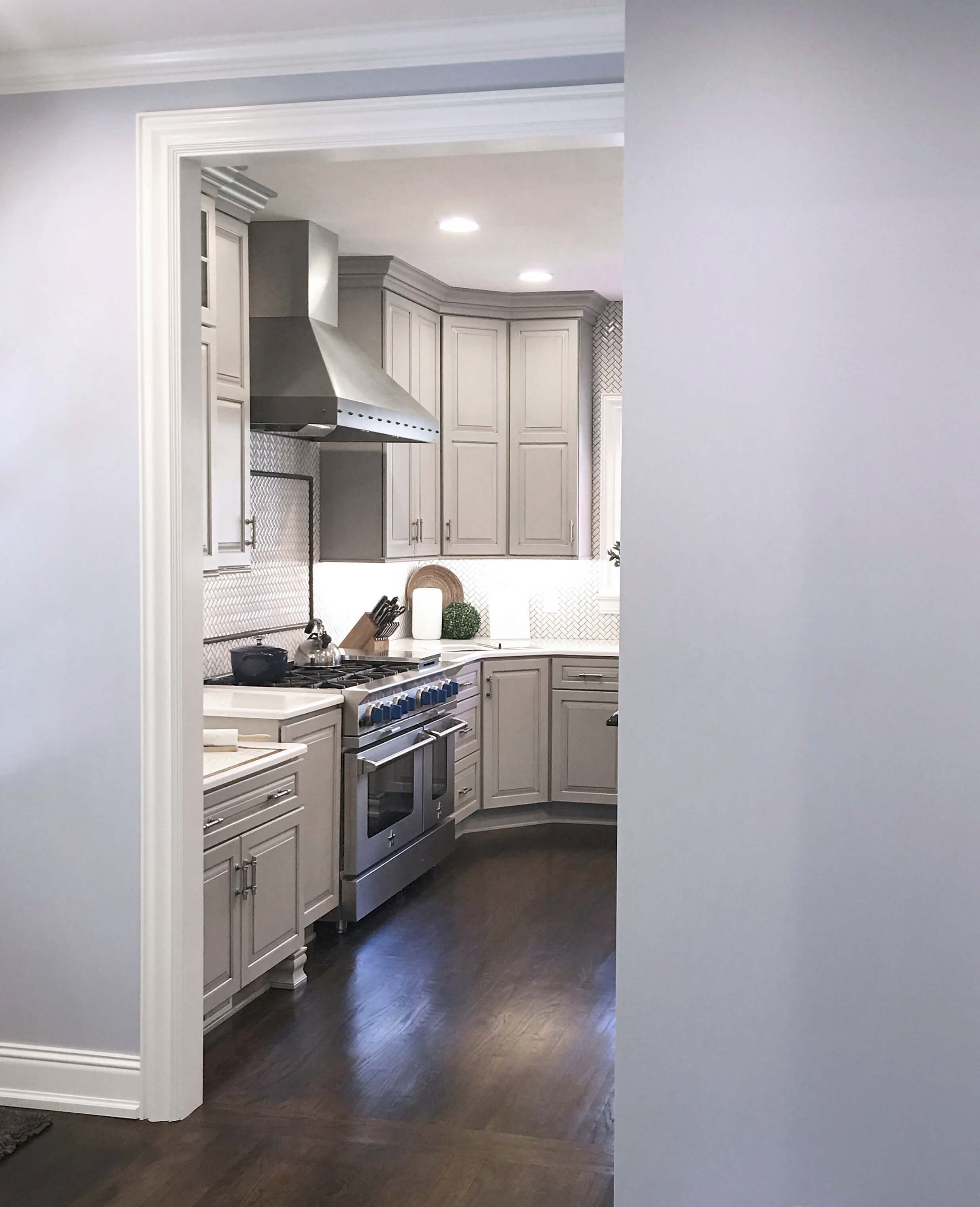 “I remember the first time I walked into their home, through the front door, and I thought to myself, ‘Wow, this house is truly amazing!’ I couldn’t stop staring at the original moldings, the narrow plank wood floors, the bookcase built-ins in the living room, etc.” explained designer Kristin. “However, as soon as I walked into the kitchen, I felt like I was in a different house. It was clearly a basic 80’s styled kitchen in a classic colonial 1920’s home.” She knew it was important for the kitchen design to complement the unique 1920’s character and charm found throughout the entire home.