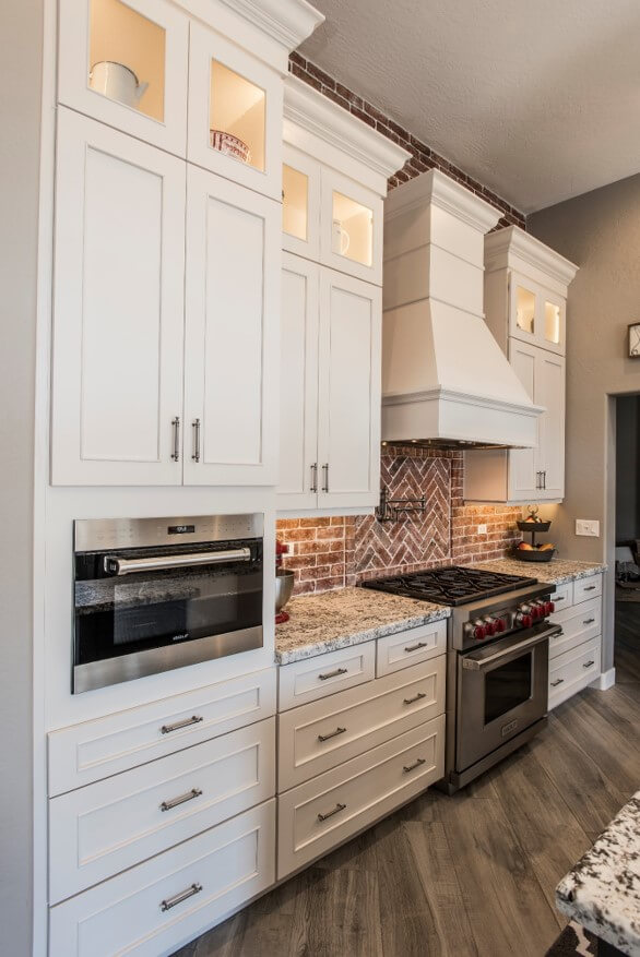Microwave, Oven and Warming Drawer in a Tall Cabinet. Dura Supreme design by Sheree Baker of K & W Interiors Inc., Photography by DMD Real Estate Photography