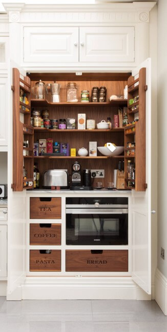 Microwave in Larder Cabinet, Design by Hughes Developments, Photography by Adam Scott Images